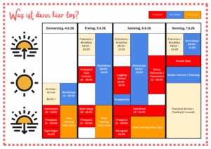 Dies ist ein experimentelles Programm für dieses Jahr. Was und wie es sein wird, hängt nur von Euch und Euren Freunden ab.